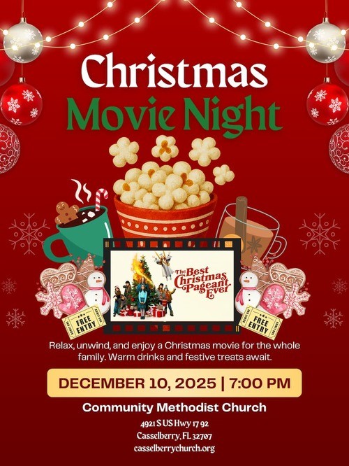 We'll be showing The Best Christmas Pageant Ever on Wednesday, December 10th at 7:00 PM. Warm drinks and festive treats await the whole family. Hope to see you there!